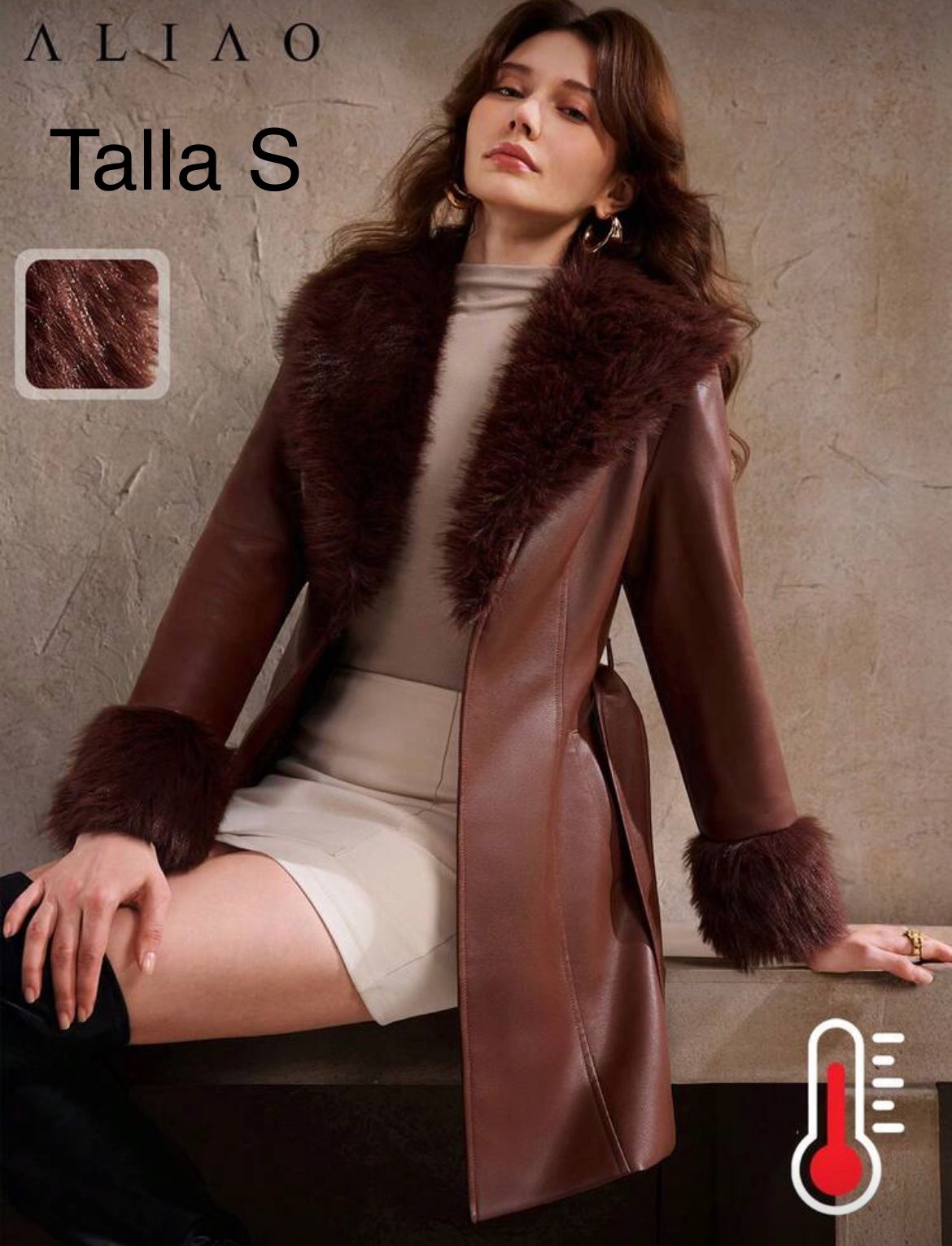 ABRIGO ELEGANTE DE VINIPIEL CON PELUCHE COLOR CAFE TALLA: S