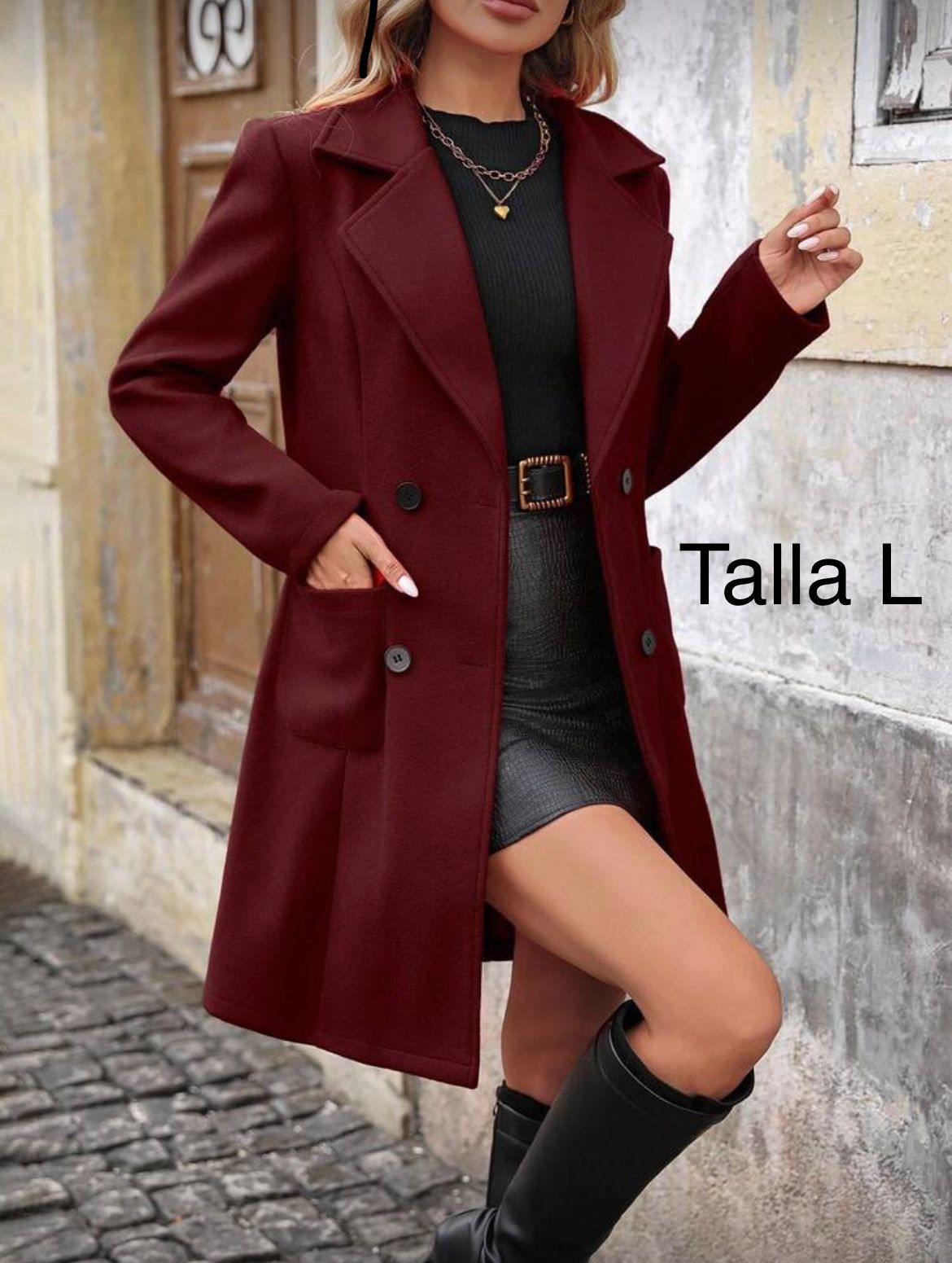 ABRIGO TINTO CON BOLSILLO Y BOTONES NEGROS TALLA: L