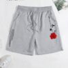 CON LETRAS EN UN COSTADO DE LA PIERNA Y DEL OTRO LADO UNA ROSA ROJA.