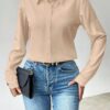 CON DETALLES DE LINEAS NEGRAS, PLIZADA DEL MEDIO Y DE MANGA LARGA.