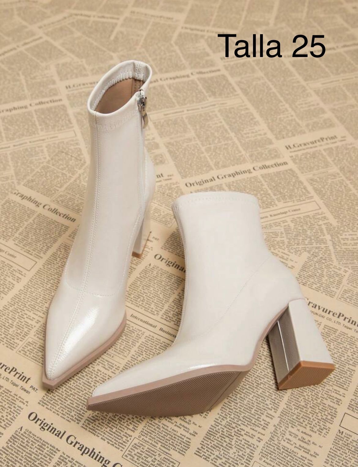 BOTÍN BLANCO DE TACÓN, CON PUNTA PUNTIAGUDA