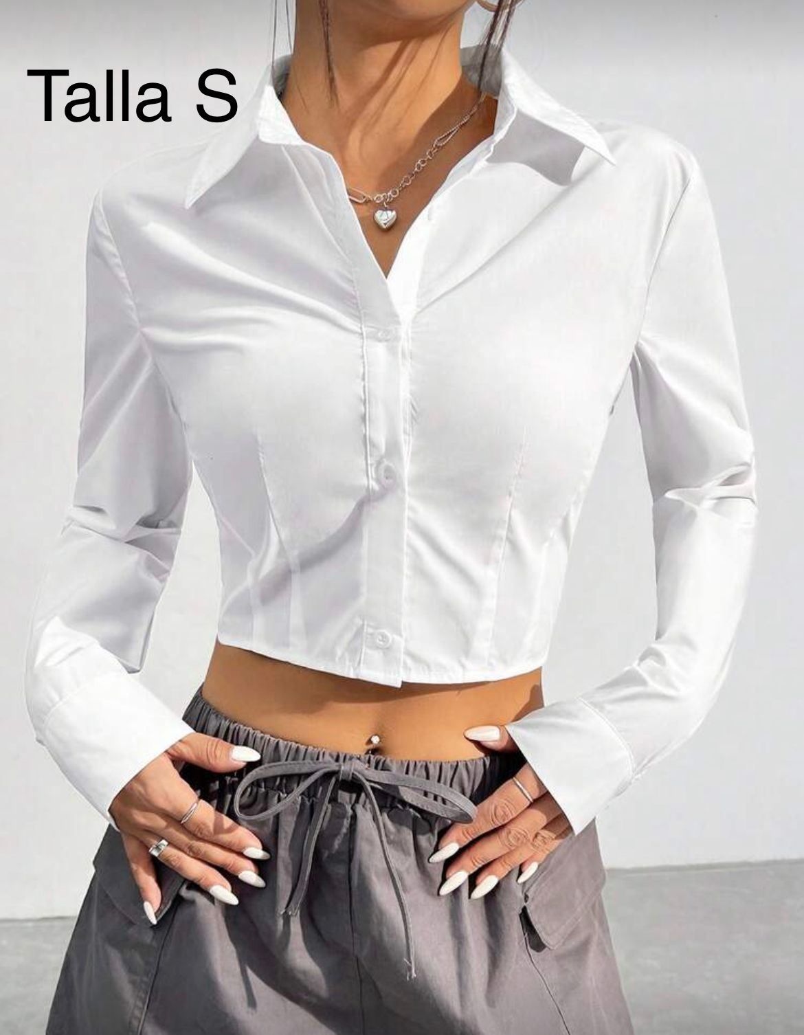 CAMISA BLANCA, CORTA DE MANGA LARGA CON BOTONES Y CUELLO TALLA: S