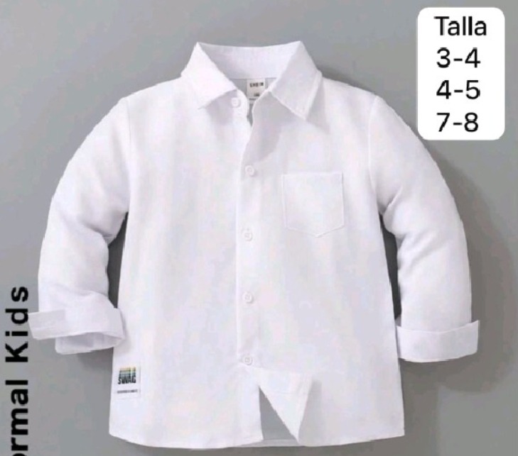 COLOR BLANCA,TELA DELGADA, TALLA 3 AÑOS Y TIPO ESCOLAR