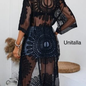TALLA UNITALLA ,LARGO, COLOR NEGRO, CON DISEÑO FLOREADO.