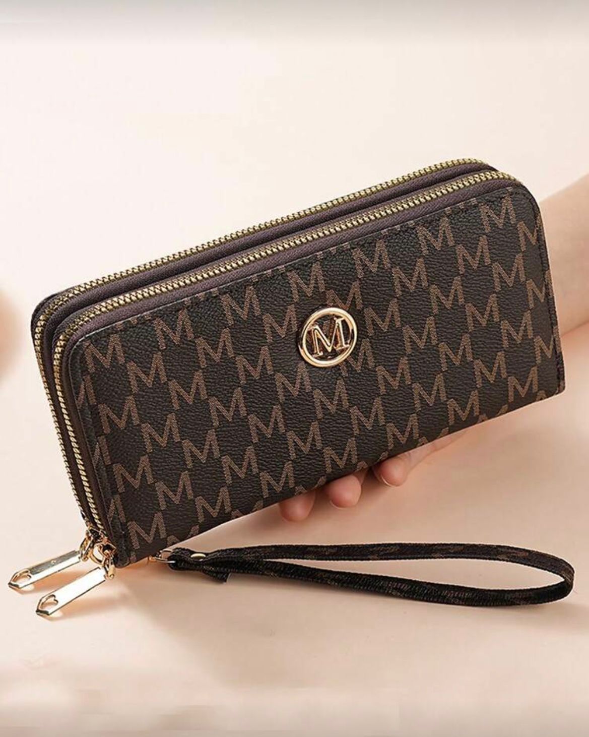 CARTERA CAFE DE DOBLE CIERRE CON CORREA