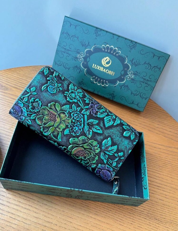 LARGA, COLOR AZUL CON FLORES ES TODO EL DISEÑO.