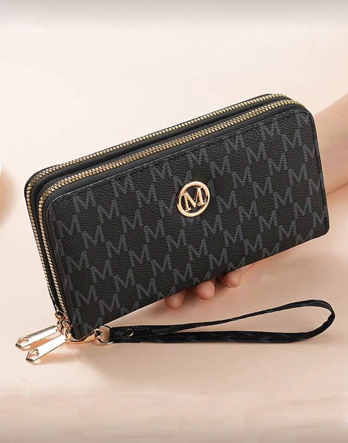 CARTERA NEGRA CON DOBLE CIERRE Y CORREA