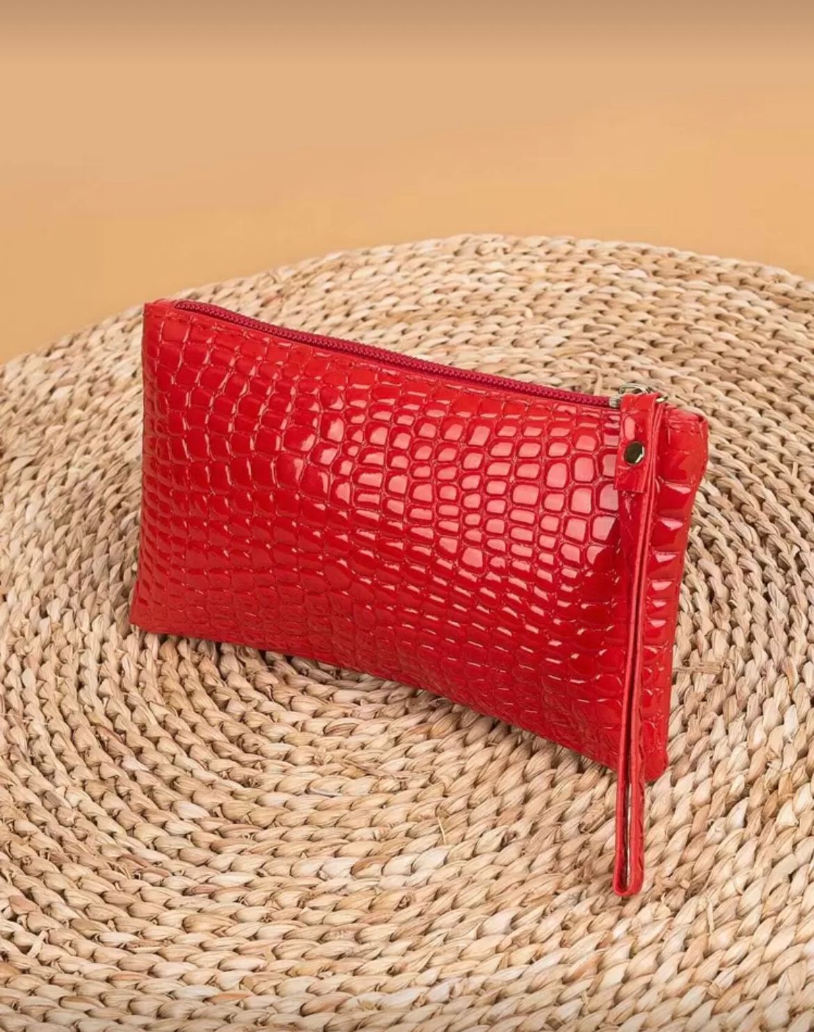 CARTERA COLOR ROJO CON DISEÑO DE CAIMAN ESTILO MUÑEQUERA