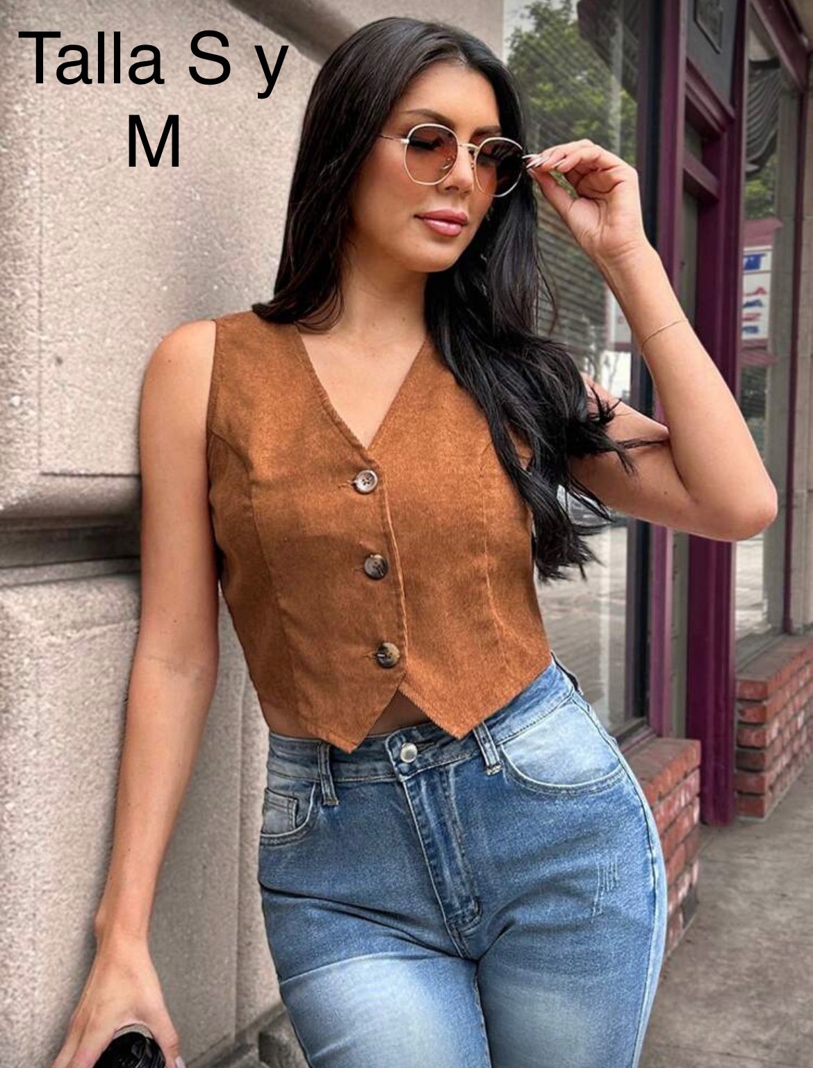 CHALECO FORMAL, COLOR CAFE CON CUELLO EN V Y BOTONES TALLA: M