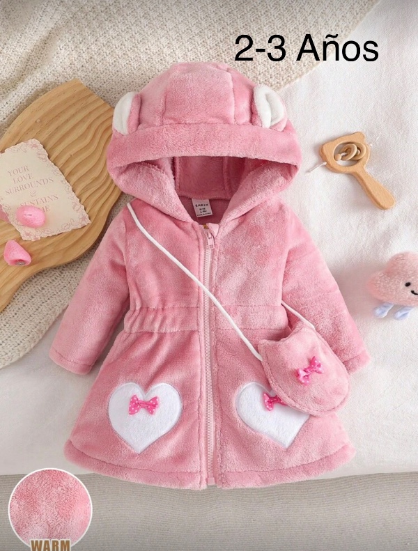 TALLA 2-3 AÑOS, COLOR ROSITA CON DETALLES BLANCOS EN LAS BOLSAS Y EN EL GORRO.