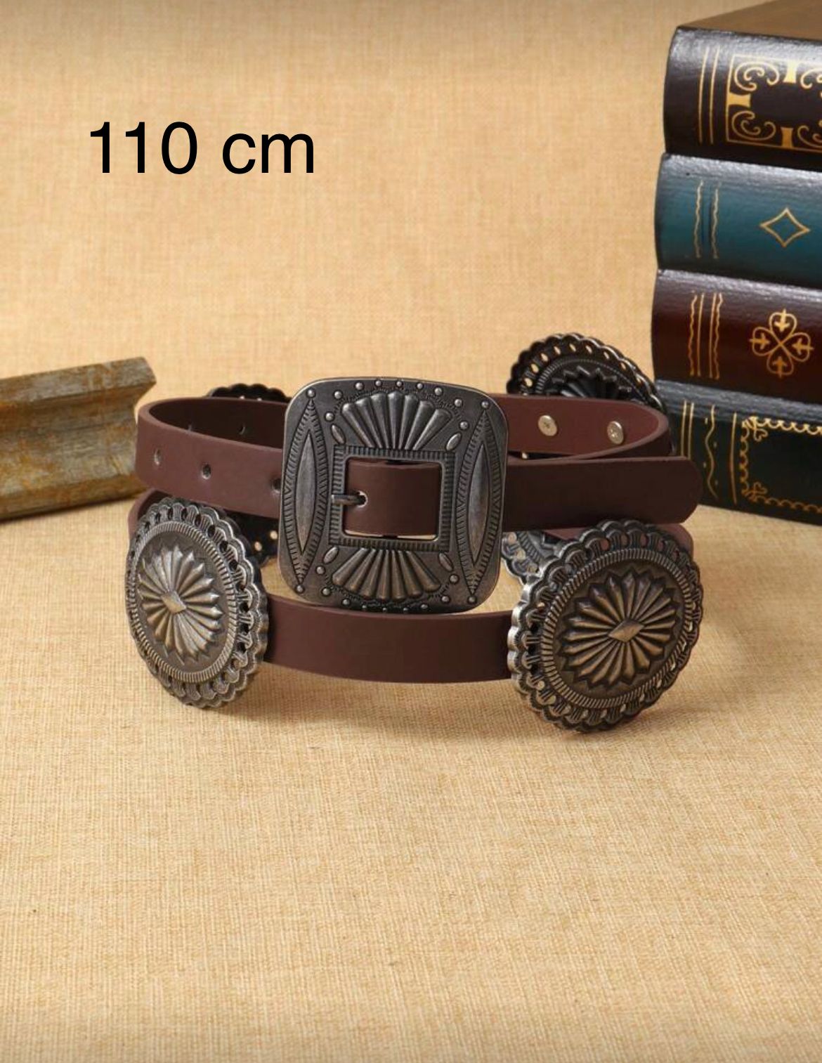 CINTO CAFE CON HEBILLAS COLOR PLATA DE 110CM