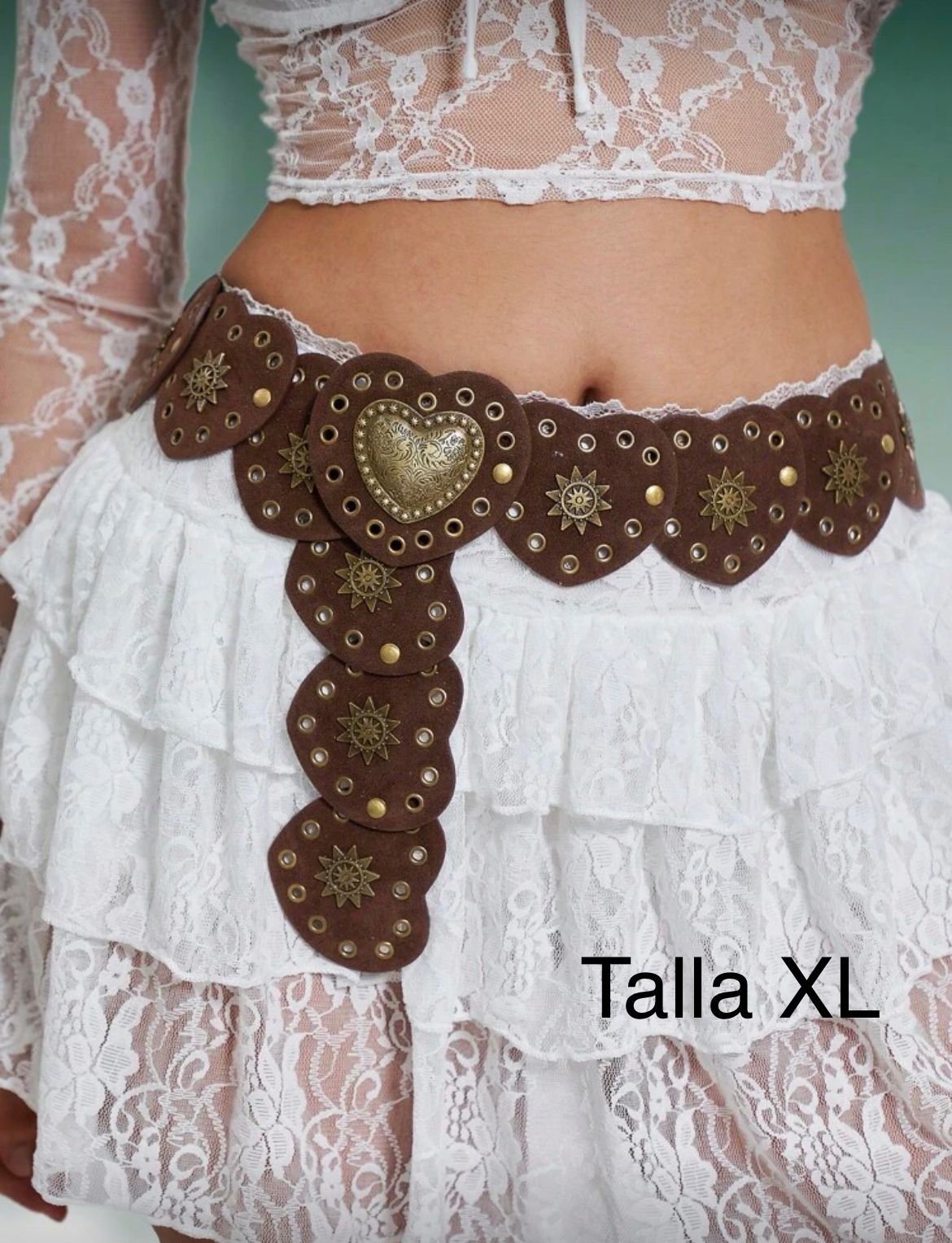 CINTO GRUESO, COLOR CAFE CON DORADO DE CORAZONES TALLA:XL