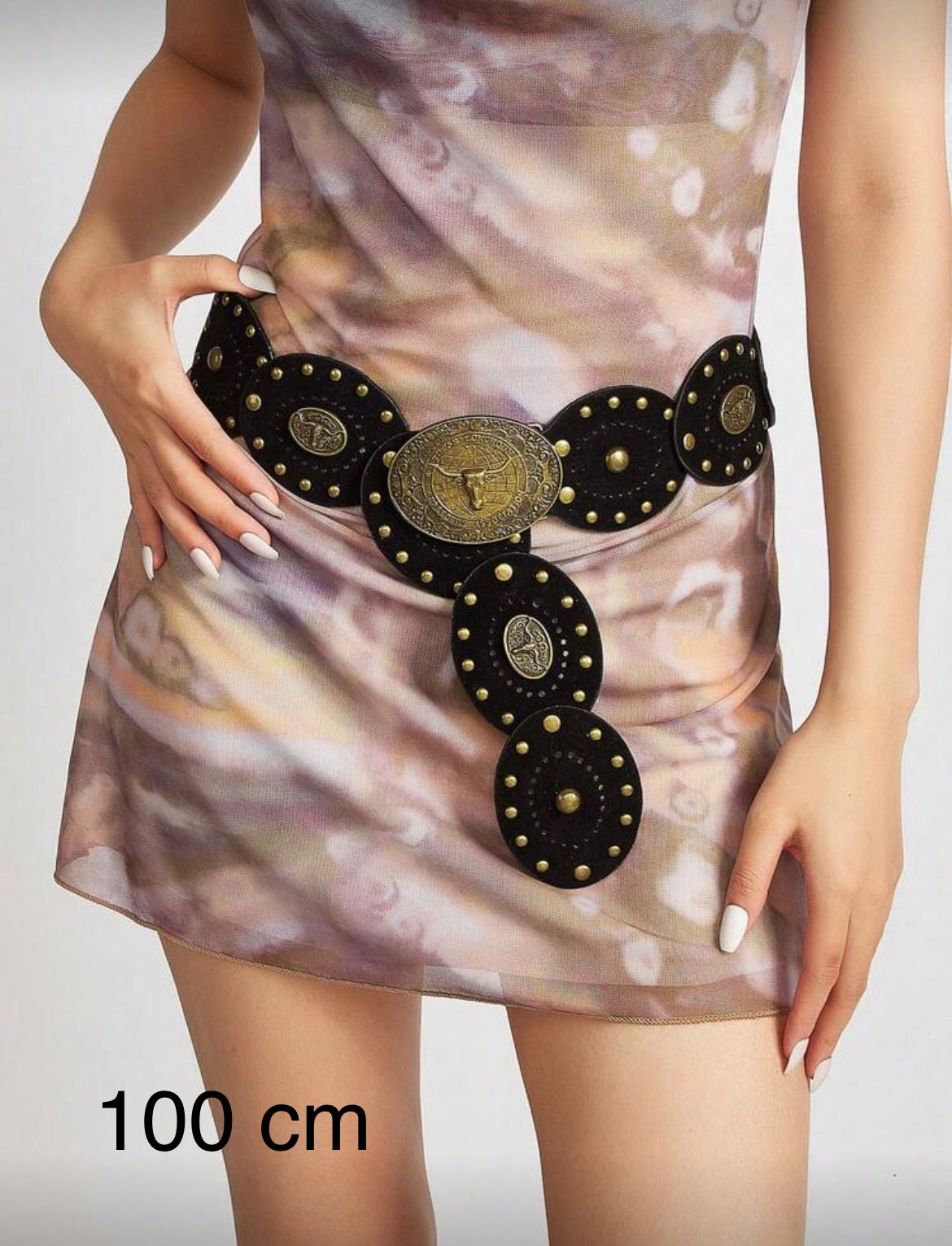 CINTO GRUESO COLOR NEGRO CON DETALLES DE TOROS DE 100CM