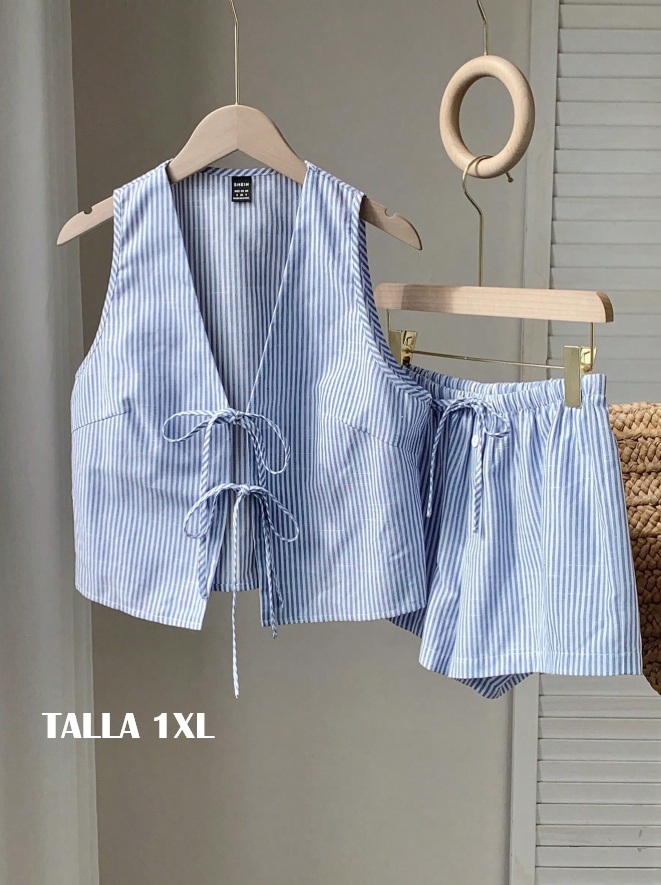 conjunto azul con blanco rayado