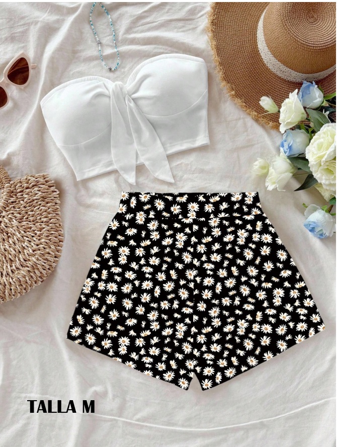 conjunto blanco de dos piezas floreado