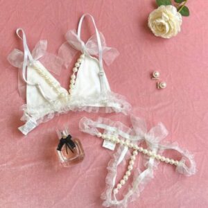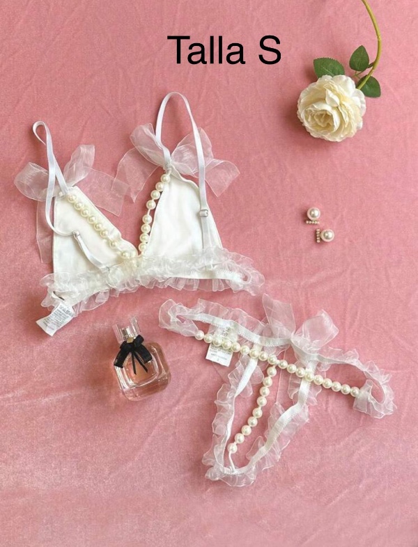 CONJUNTO BLANCO CON PERLAS EN ACCESORIOS Y MATERIAL DE LISTON
