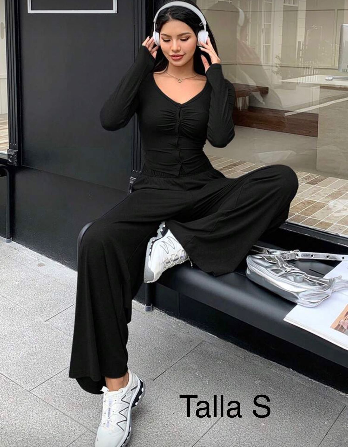 CONJUNTO DE TOP MANGA LARGA Y PANTALÓN CON FORRO TÉRMICO, COLOR NEGRO