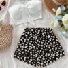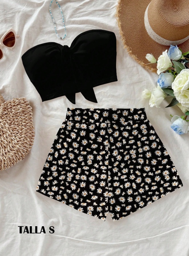 conjunto negro con flores blancas