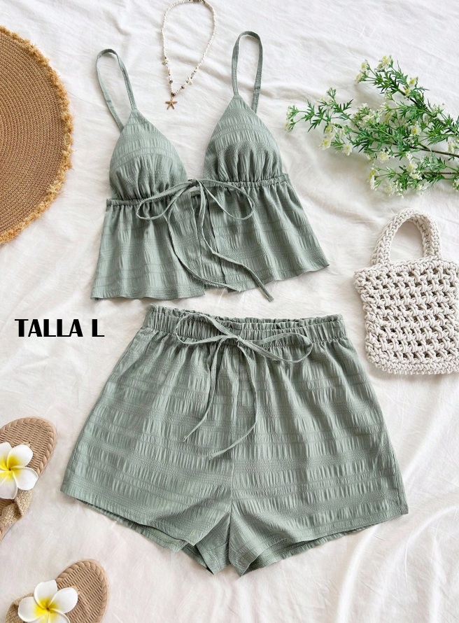 conjunto verde ligero de dos piezas con moñito en ambas partes