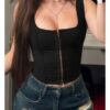 CORSET CROP TOP CAFE VINTAGE CON CUELLO CUADRADO, OJALES DELANTEROS Y CORDONES EN LA ESPALDA