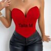 COLOR ROJO CON ESCOTE CUADRADO Y BUSTO EN CORAZON CON ENCAJE ABAJO DE EL BUSTO.