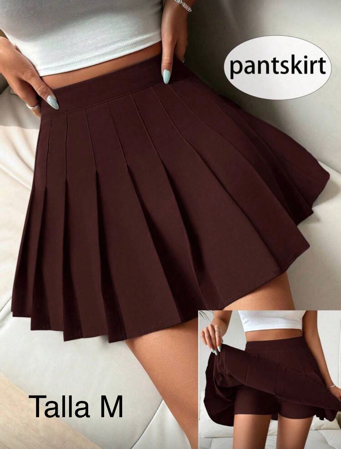 FALDA CON SHORT CORTO, PLISADA CASUAL ESTILO Y2K COLOR CAFE INTEGRAL