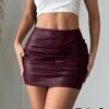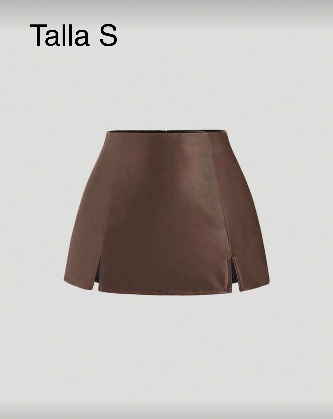 FALDA MINI DE VINIPIEL, CON ABERTURAS LATERALES, COLOR CAFÉ TALLA: S