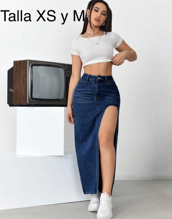 FALDA DE MEZCLILLA CON ABERTURA EN PIERNA TALLA XS