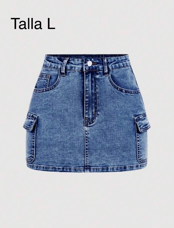 FALDA DE MEZCLILLA CORTA CON BOLA A LOS LADOS TALLA L