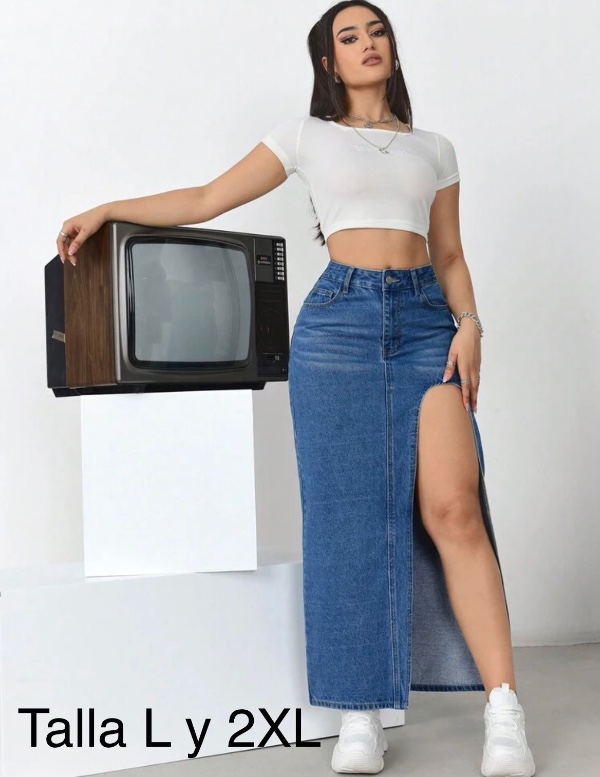 FALDA MEZCLILLA CON ABERTURA EN PIERNA TALLA XXL