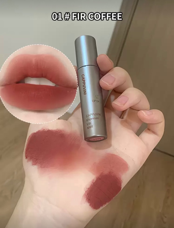 LABIAL ESTILO TINTA POR EL EFECTO DE APLICADOR LARGO Y EMPAQUE CAFE.
