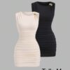 VESTIDO CORTO ASIMETRICO CON UNA COLA DE UN LADO DESDE LA PIERNA.