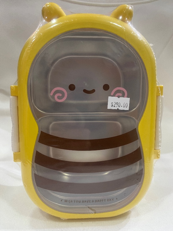 LONCHERA DE METAL CON DISEÑO ANIMADO DE ABEJA.