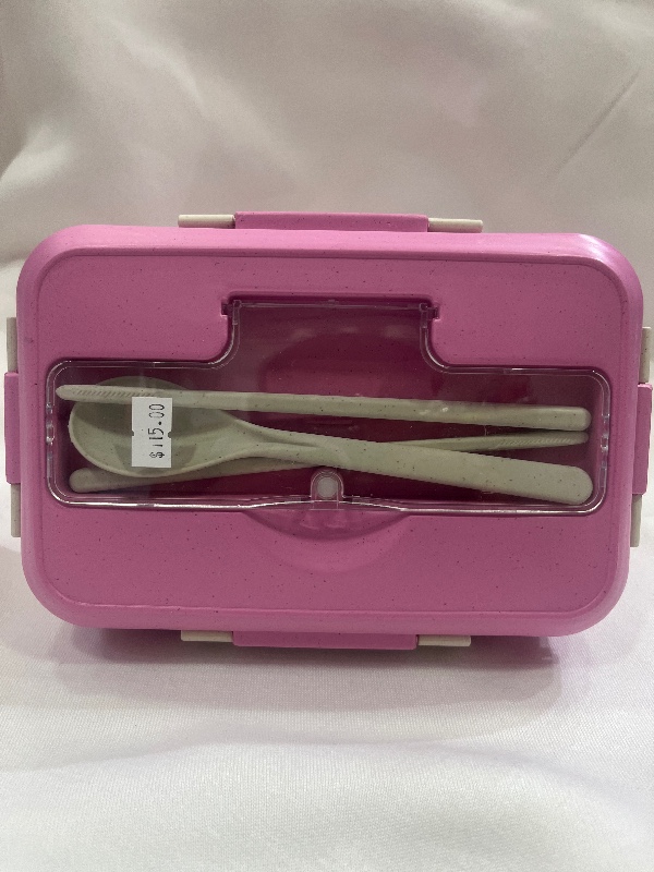 CON DOS COMPARTIMENTOS, ARRIBA CONTIENE CUBIERTOS Y UN DETALLE .