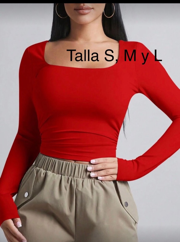 BLUSA COLOR ROJO EN ESCOTE CUADRADO.