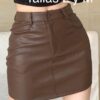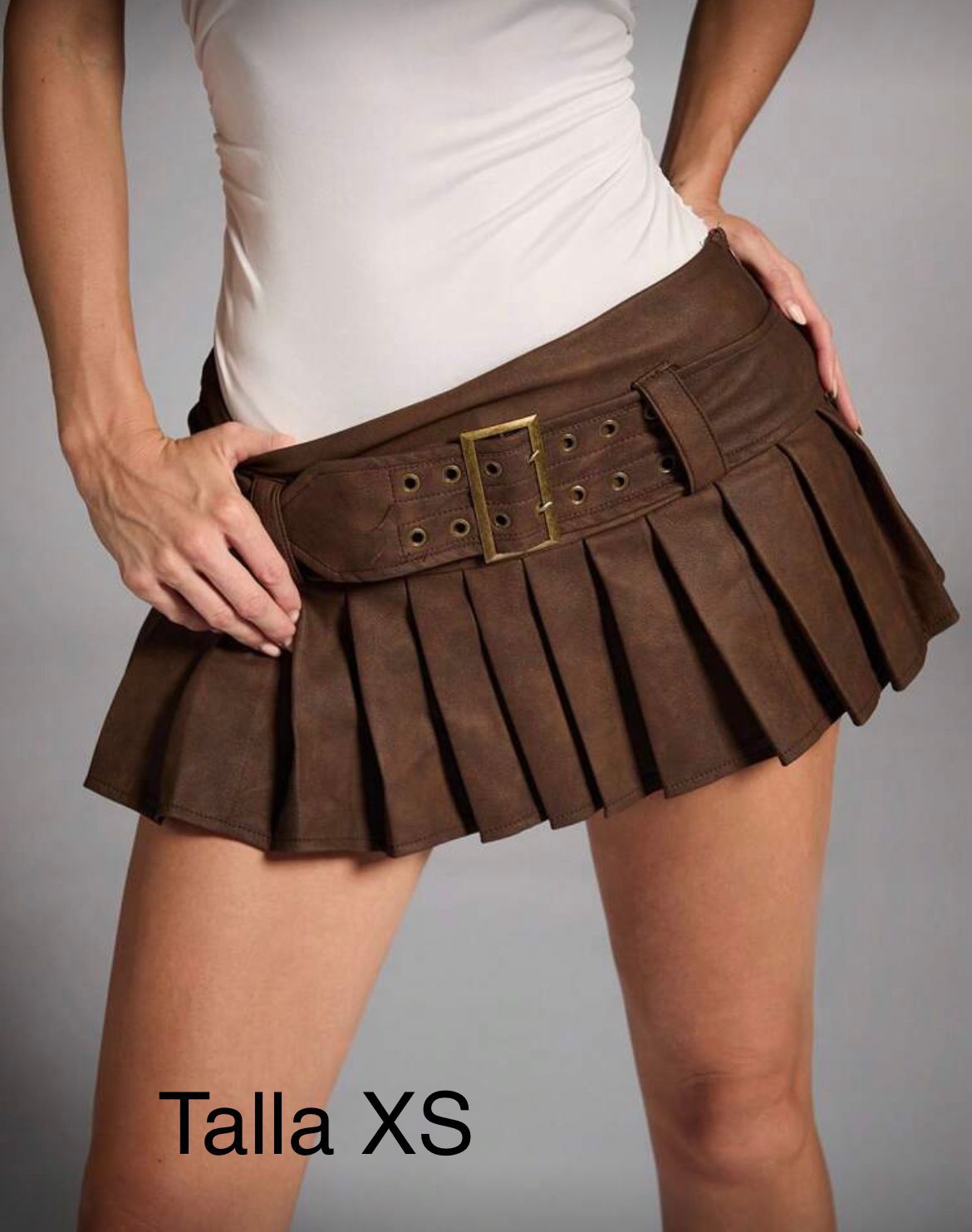 MINIFALDA PLISADA CON HEBILLA DE OJAL Y DISEÑO EN EL CINTURÓN, COLOR OXIDO MARRÓN TALLA: XS