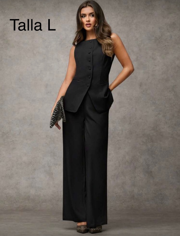 CONJUNTO DE CHALECO CON BOTONES Y PANTALON DE VESTIR.