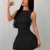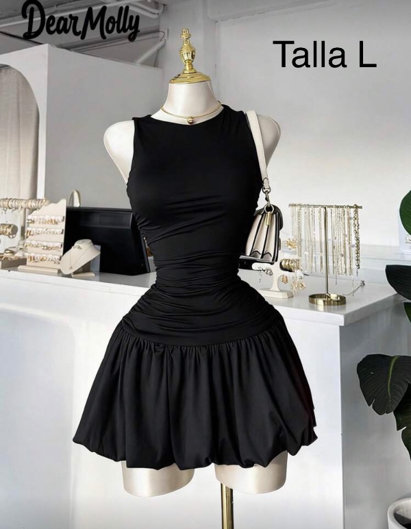 VESTIDO SIN MANGAS APLIZADO DE EL MEDIO Y TABLEADO DE LA PARTE DE ABAJO.