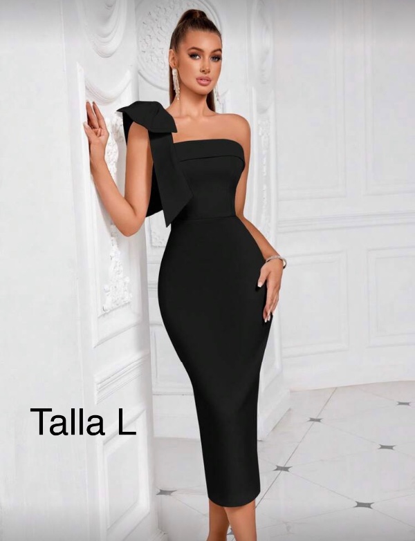 ESTRAPLE CON UN TIRANTE GRUESO DE UN LADO Y UN MOÑO ARRIBA.