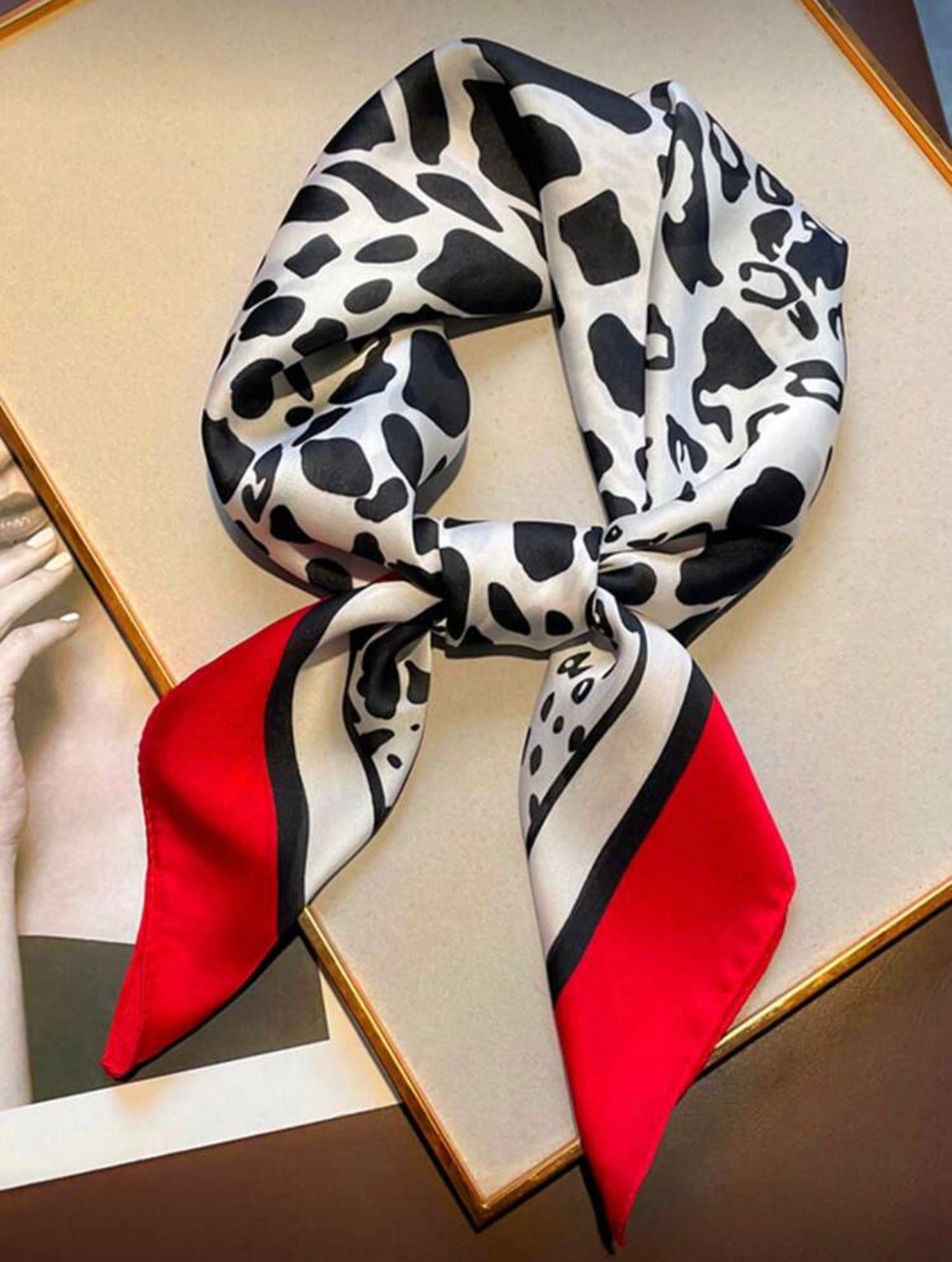 PAÑOLETA COLORIDA, CON BLANCO, NEGRO Y ROJO EN LAS ORILLAS