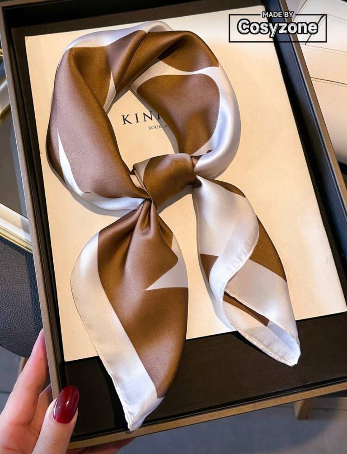 PAÑOLETA COLOR CAFE CON BLANCO