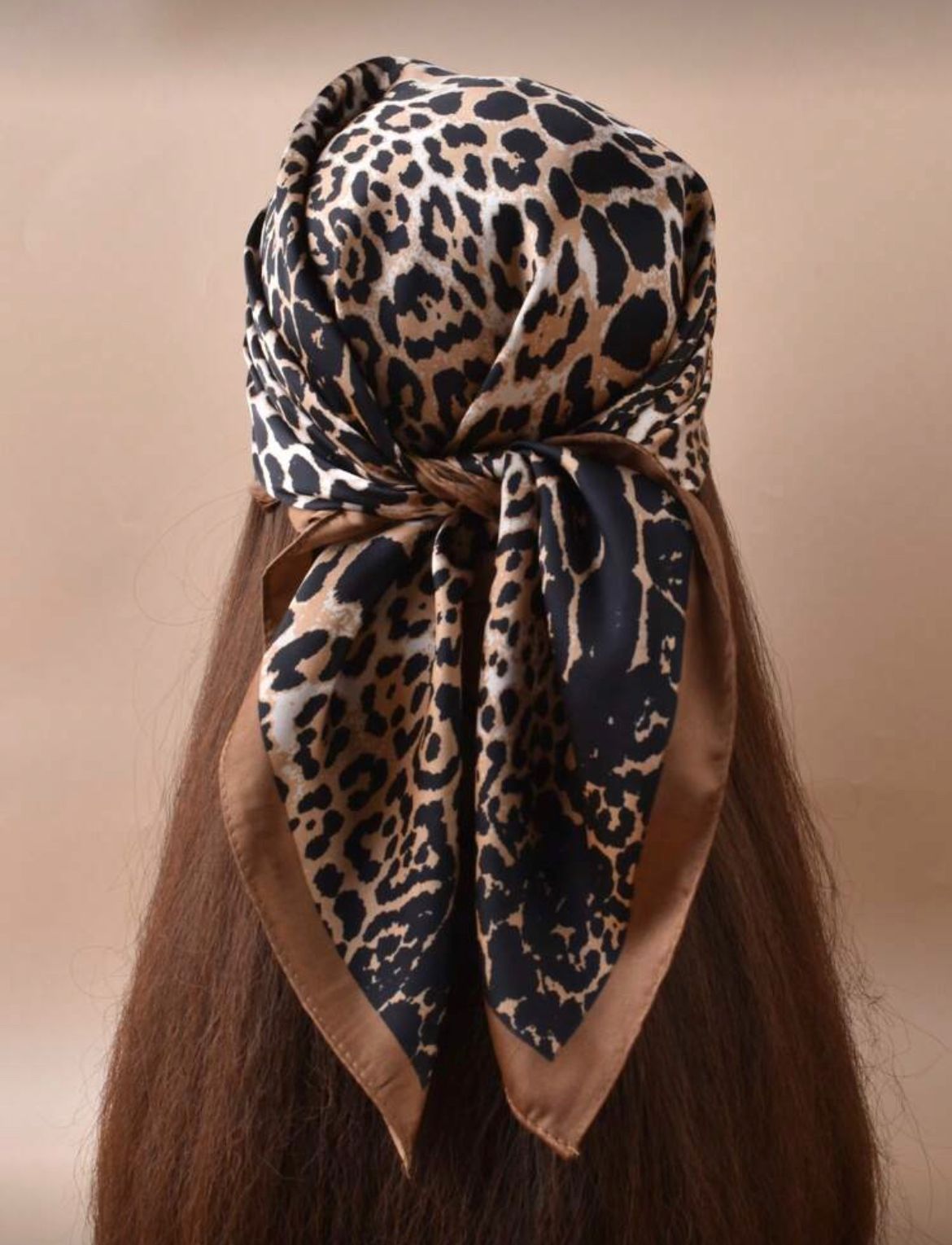 PAÑOLETA CON DISEÑO DE LEOPARDO Y BORDES COLOR CAFE