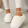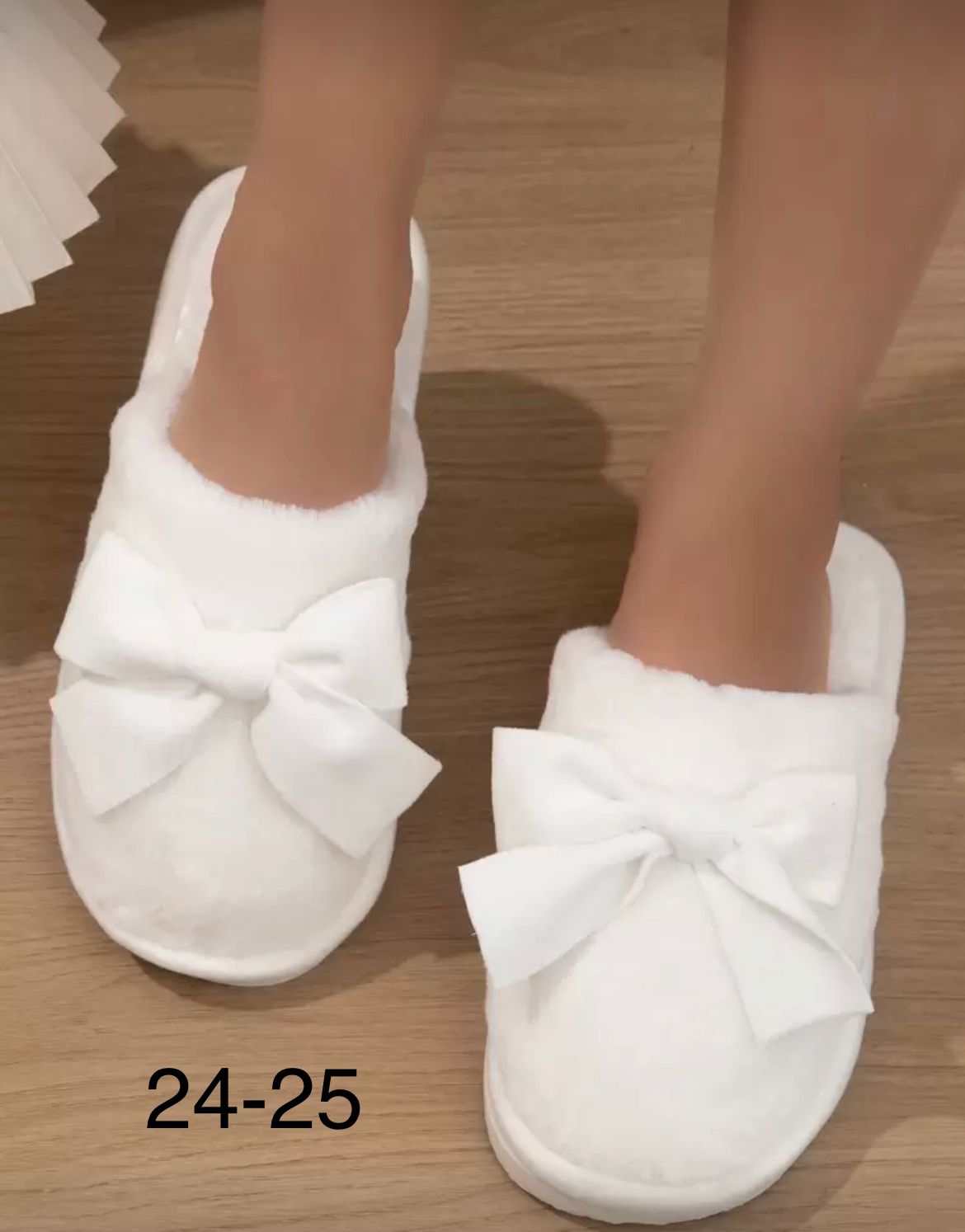 PANTUFLA BLANCA AFELPADA CON MOÑO AL FRENTE