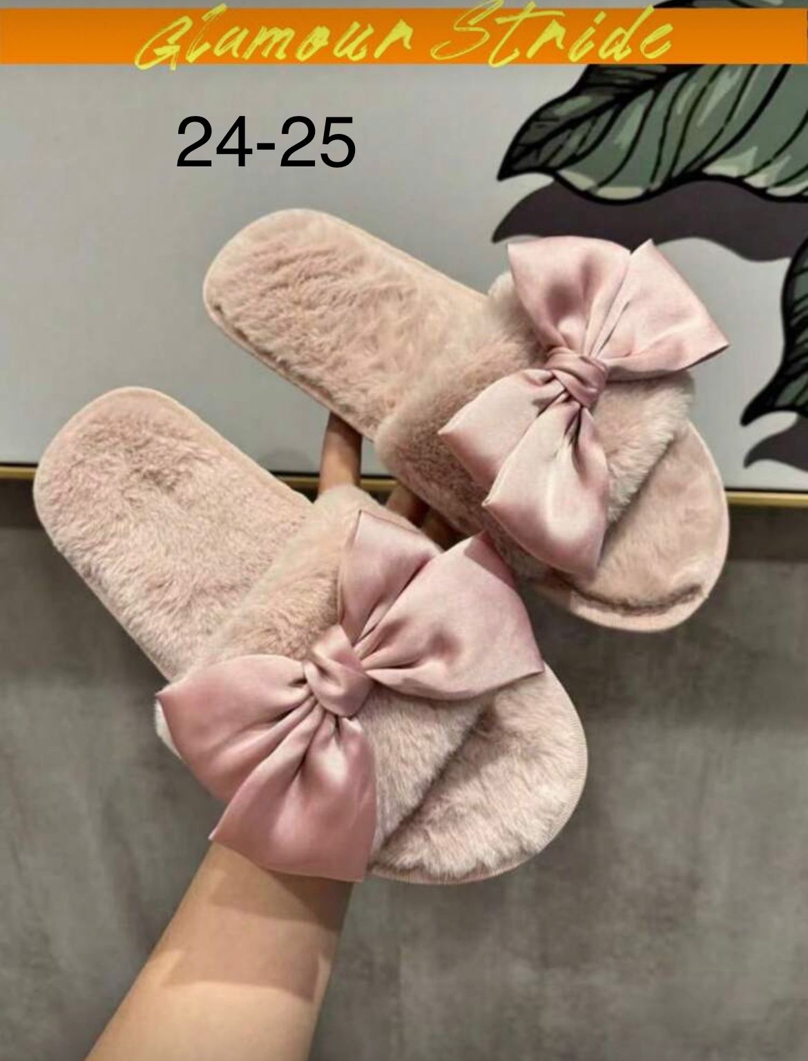 PANTUFLA COLOR ROSA TIPO SANDALIA AFELPADA CON MOÑITO AL FRENTE