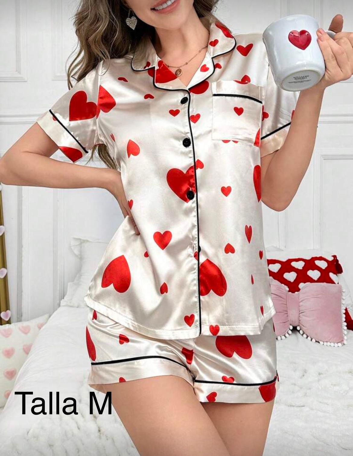 COLOR PERLA CON CORAZONES GRANDES COLOR ROJOS Y BOTONES NEGROS
