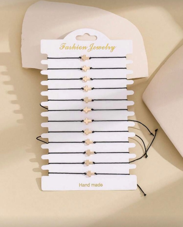 TIRA NEGRA Y CRUZ DORADA DE ACCESORIO.