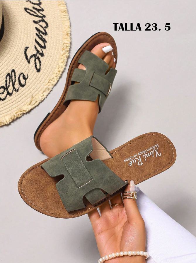 SANDALIAS VERVE OLIVO DE SUELA PLANA