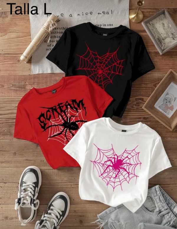 BLUSA CON DISEÑO DE ARAÑA Y TELARAÑA COLOR NEGRO.