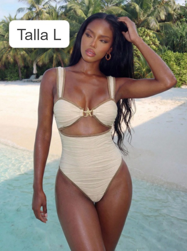 traje de baño beige con una estrella dorada