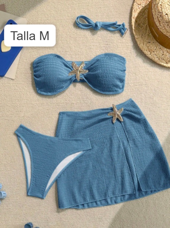 traje de baño con estrellas plateadas 3 piezas